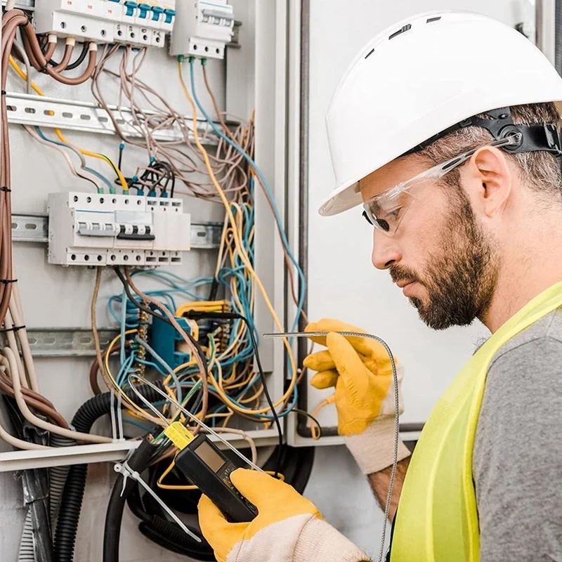 - Визуальный осмотр — помогает выявить явные повреждения и дефекты — например, обнажённые провода, обгоревшую изоляцию или коррозию. Важно осматривать как видимые участки проводки, так и те, что скрыты в стенах или под потолком (особенно если проводка старая).